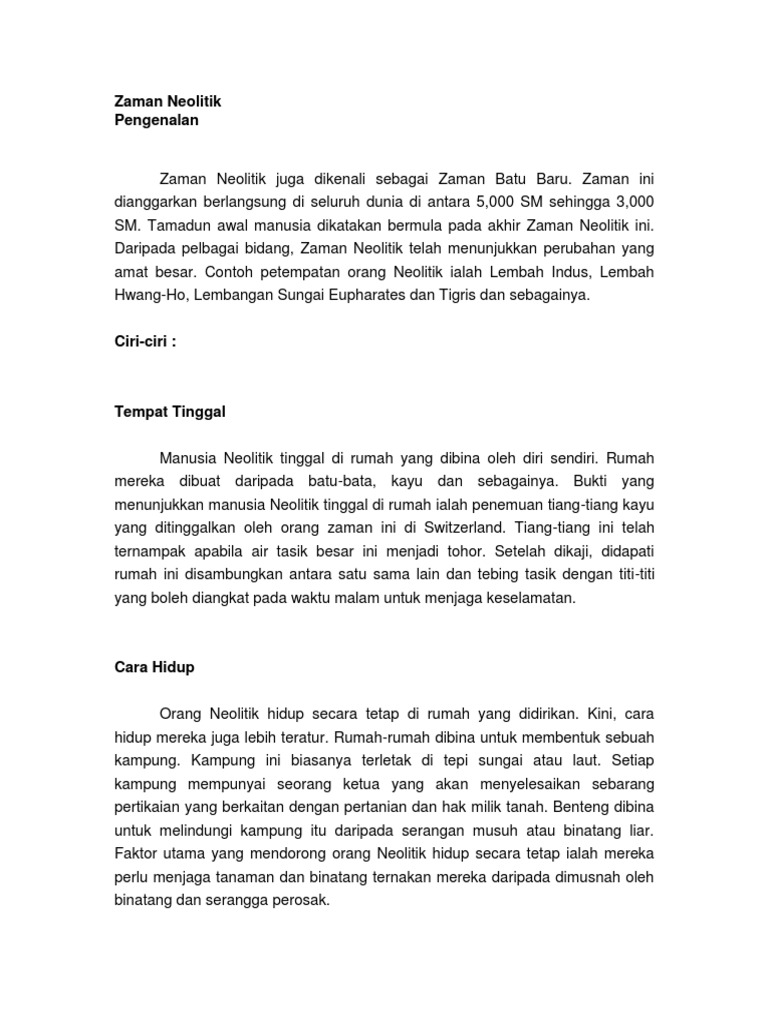 Ciri Ciri Zaman Neolitik Otosection